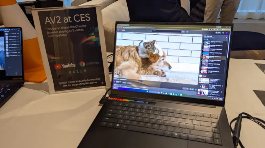 经过五年的努力,AV2 规范现已公开发布 ,AOMedia 成员公司已开始在实际播放环境中进行演示。在2026年国际消费电子展(CES)上,AOMedia 成员谷歌和 VideoLAN 在 THX 的支持下参与了 AV2 解码演示。他们展示了使用当前参考实现的笔记本电脑上的实时 AV2 播放,涵盖了原生应用程序和基于浏览器的流媒体管道。