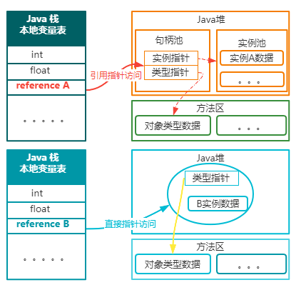 句柄池用于存储Java对象的引用,它是实例池的一种优化方式。在句柄池中,每个Java对象都有一个句柄,句柄包含了对象的实际地址和类型信息。引用变量实际上是指向句柄而不是对象本身。句柄池的构成包括以下几个方面: